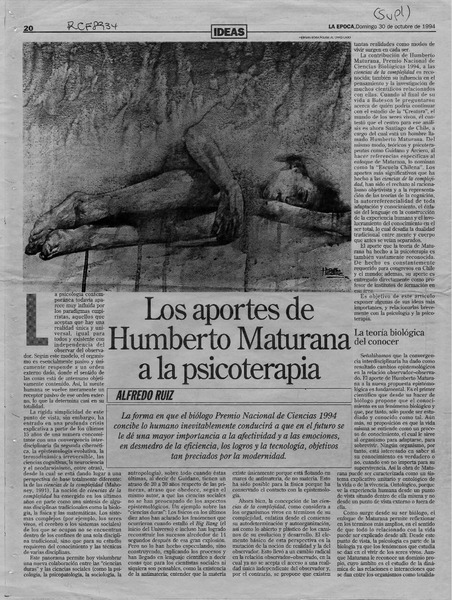 Los aportes de Humberto Maturana a la psicoterapia [artículo] Alfredo Ruiz.