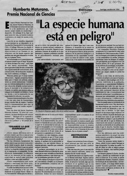 "La especie humana está en peligro" [artículo] Pedro Fernández.