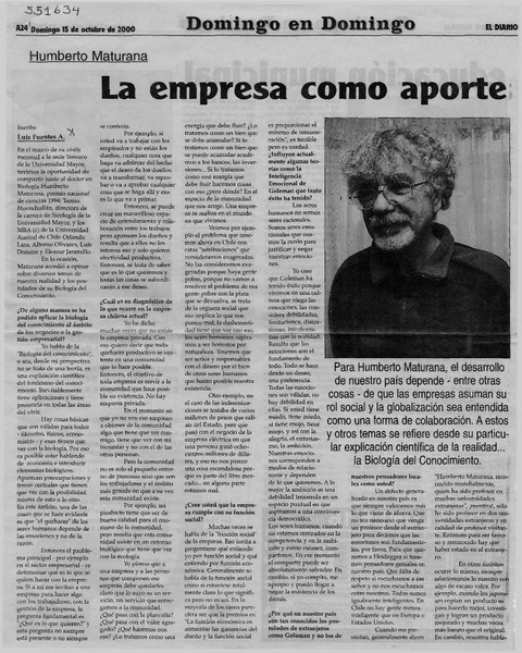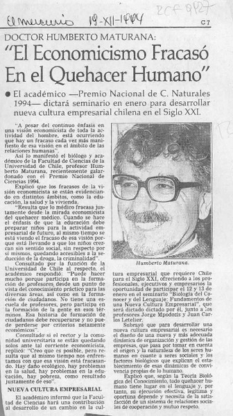 Empresarios con Humberto Maturana [artículo] Pedro Aranda Astudillo.