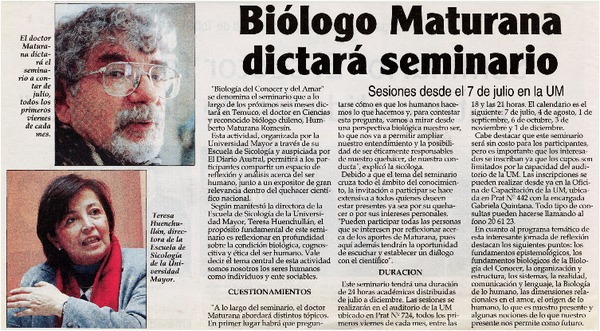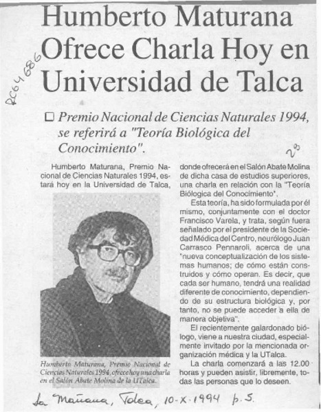 Humberto Maturana ofrece charla hoy en Universidad de Talca [artículo].
