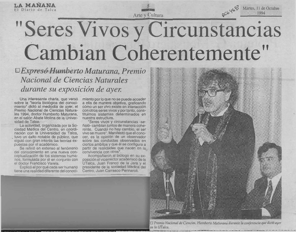 "Seres vivos y circunstancias cambian coherentemente" [artículo].