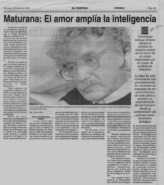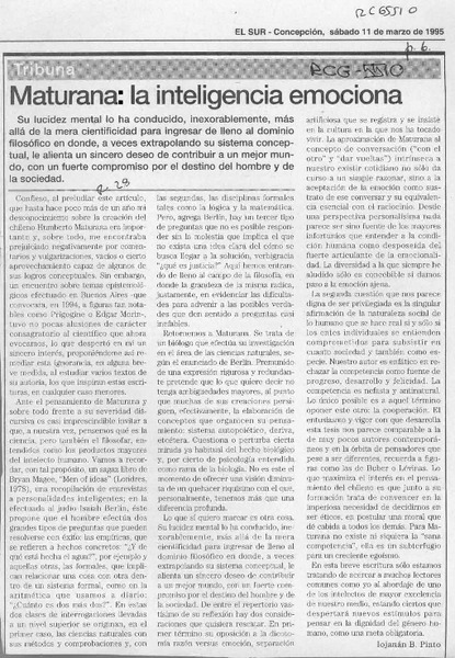 Maturana, la inteligencia emociona [artículo] Iojanán B. Pinto.