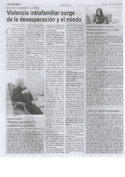 Violencia intrafamiliar surge de la desesperación y el miedo (entrevista) [artículo] Carlos Carrasco Olea.