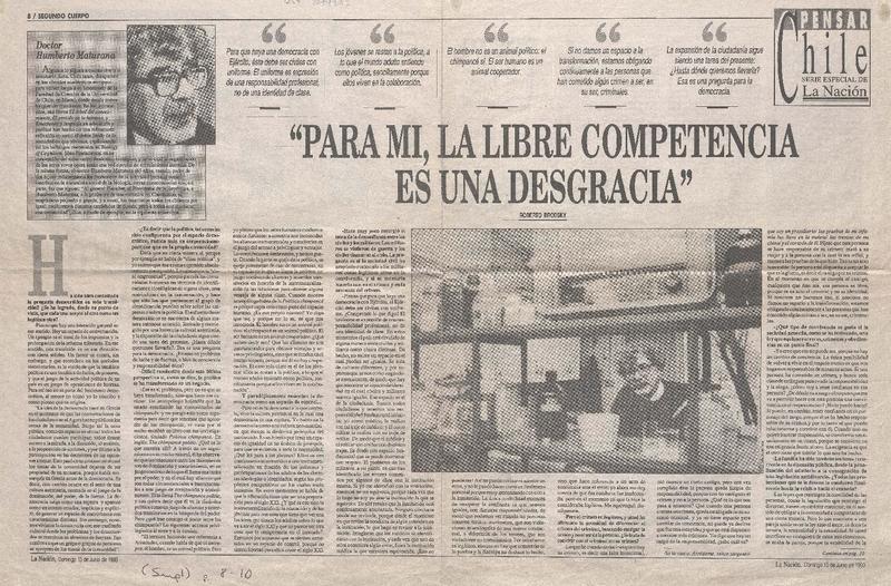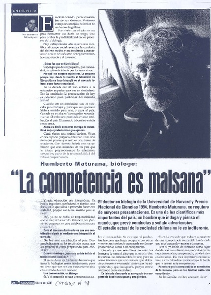 Biólogo Maturana critica concepto de la competencia [artículo].