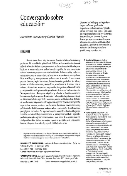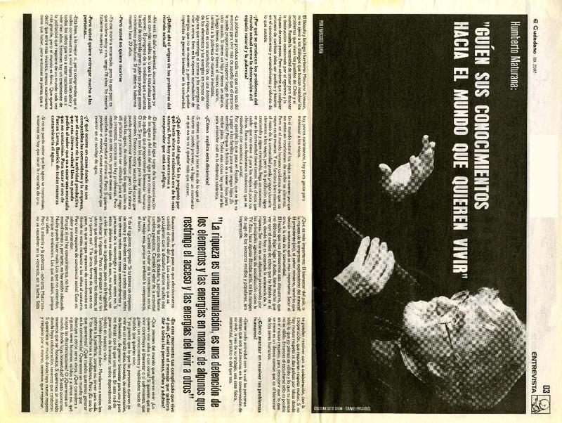 Autores chilenos - Maturana R., Humberto - Entevistas