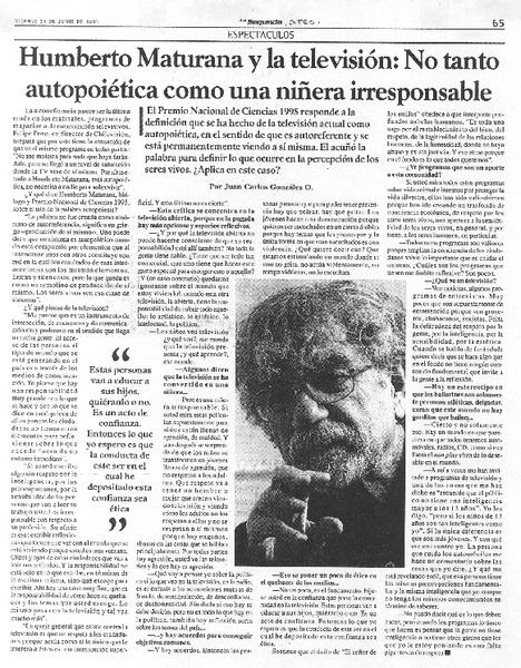 Humberto Maturana y la televisión: No tanto autopoiética como una niña irresponsable [entrevista] [artículo] Juan Carlos González O.