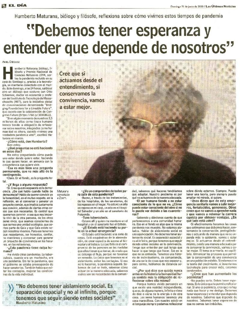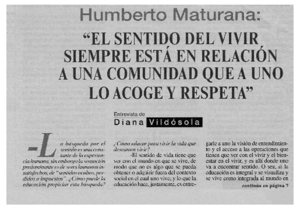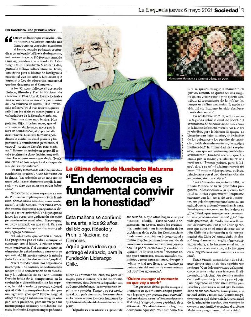 Humberto Maturana: "Guíen sus conocimientos hacia el mundo que quieren vivir" (entrevista) [artículo]Francisco Marín.