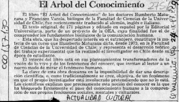 Maturana R., Humberto - VARELA G., FRANCISCO - Arbol de conocimiento - ARBOL DEL CONOCIMIENTO, EL