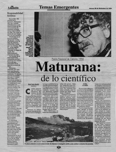 Maturana, Premio Nacional Ciencias Naturales [artículo] Ximena Poo.