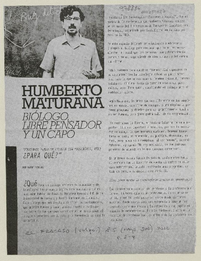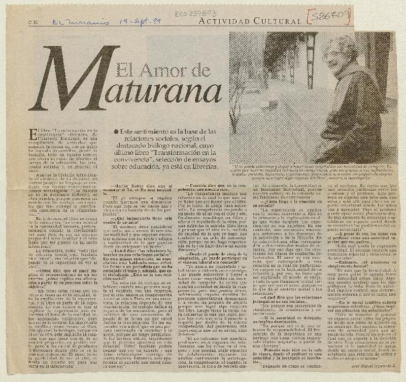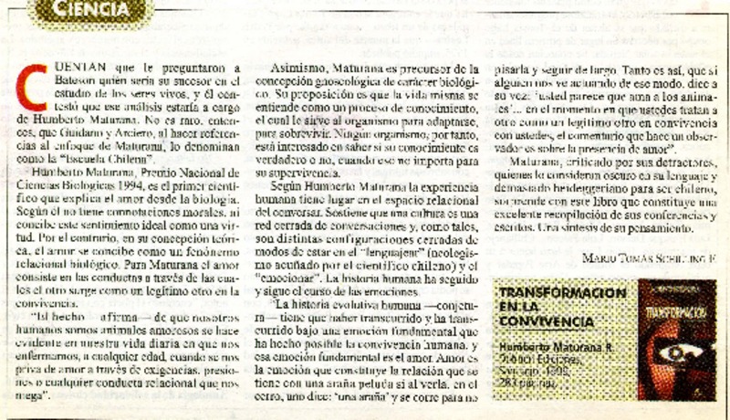 Maturana, de lo científico y de lo humano [artículo] Marcel Socías Montofré.