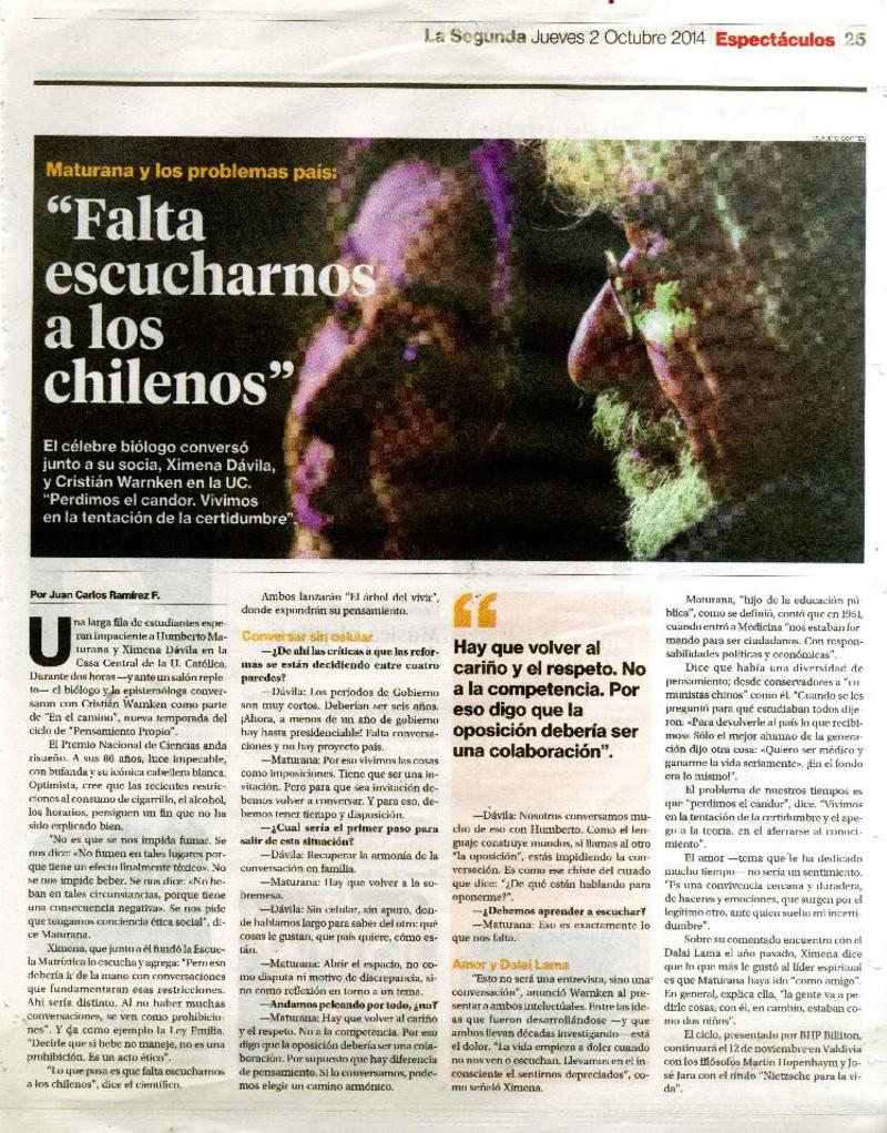 Maturana y los problemas país: "Falta escucharnos a los chilenos" [artículo] Juan Carlos Ramírez F.