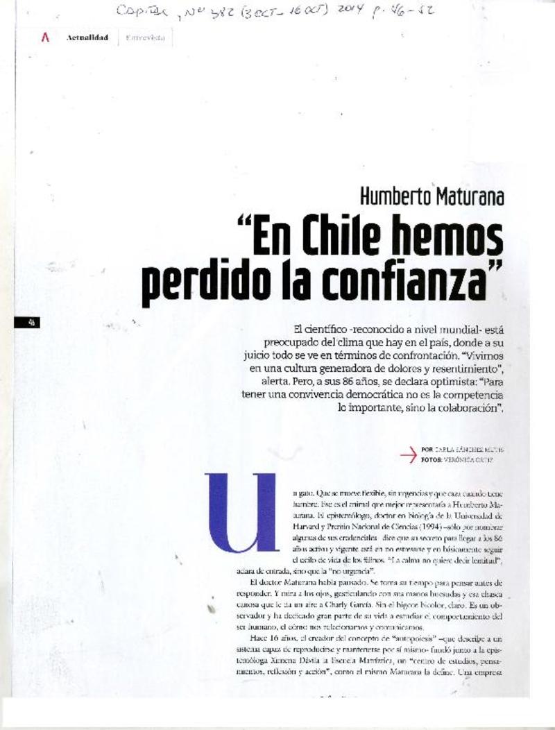 "En Chile hemos perdido la confianza" [artículo] Carla Sánchez Mutis