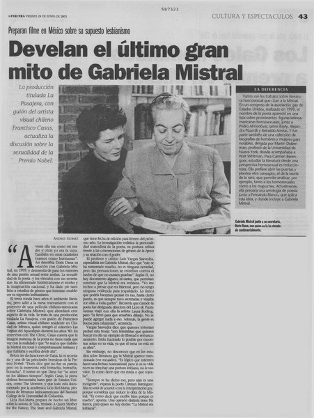 Develan el último gran mito de Gabriela Mistral [artículo] Andrés Gómez