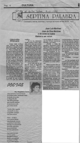 Juan Luis Martínez, Juan de Dios Martínez o de como no todos íbamos a ser reinas [artículo] Jaime Maldonado de la F.