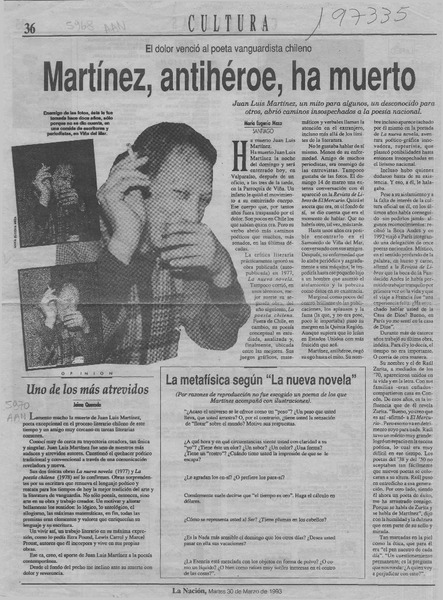Martínez, antihéroe, ha muerto [artículo] María Eugenia Meza.