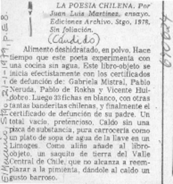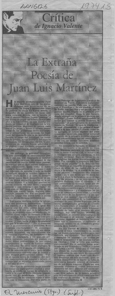 La extraña poesía de J. L. Martínez [artículo] Ignacio Valente.