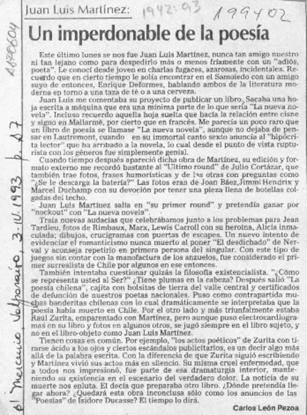 Un imperdonable de la poesía [artículo] Carlos León Pezoa.