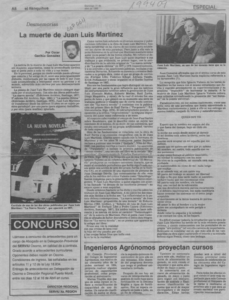Muerte de Juan Luis Martínez [artículo] E. Rodríguez.