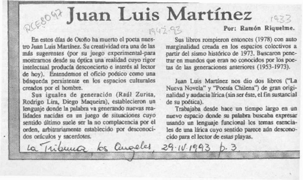 Juan Luis Martínez [artículo] Ramón Riquelme.