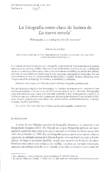 La fotografía como clave de lectura de la nueva novela [artículo] Valeria de los Ríos.