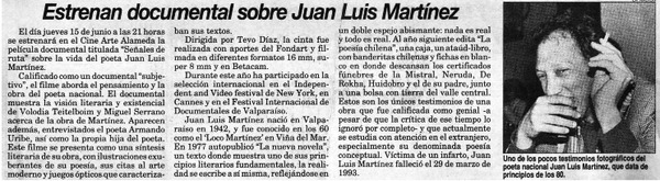 Estrenan documental sobre Juan Luis Martínez [artículo]