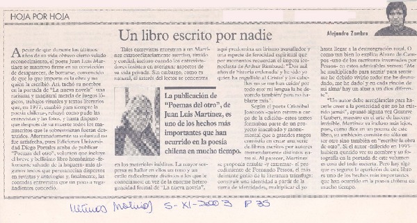 Un libro escrito por nadie [artículo] Alejandro Zambra.