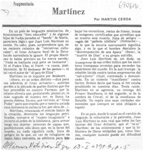 Muy temprano para Juan Luis Martínez [artículo] Filebo.