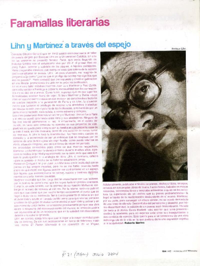 Faramallas literarias Lihn y Martínez a través del espejo [artículo] : Roberto Merino.