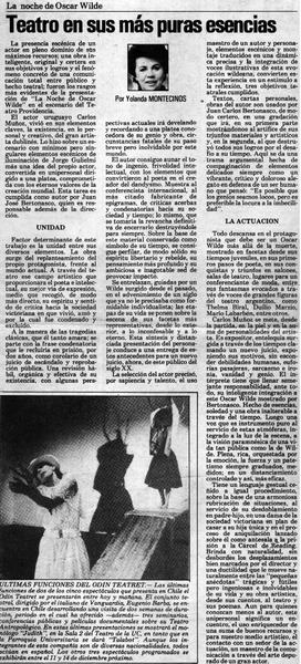 Teatro en sus más puras esencias [artículo] Yolanda Montecinos.