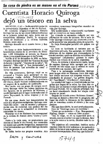 Sino e ideal de Horacio Quiroga [artículo] Lot.