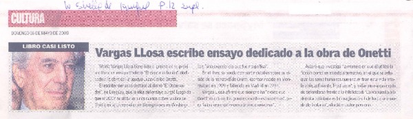 Vrgas Llosa anuncia un ensayo dedicado a Juan Carlos Onetti [artículo].