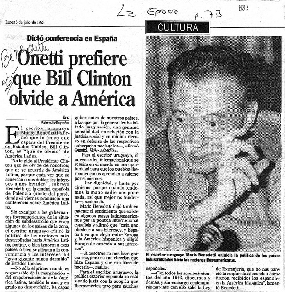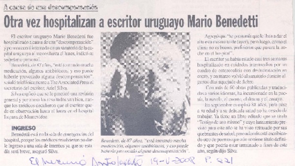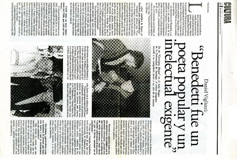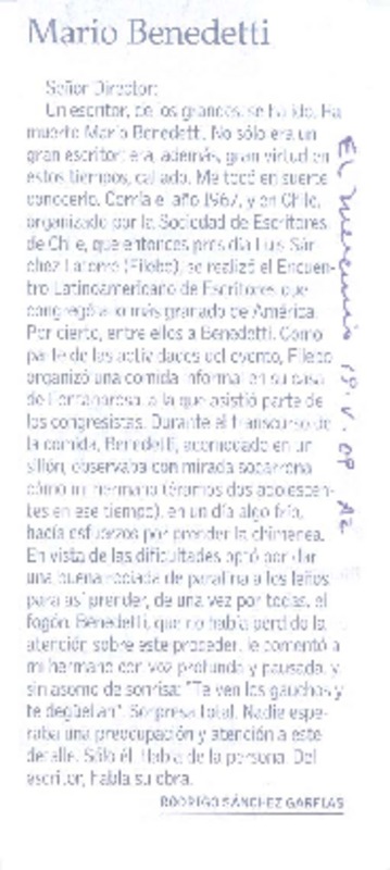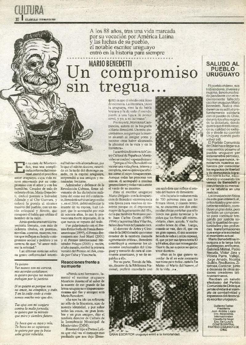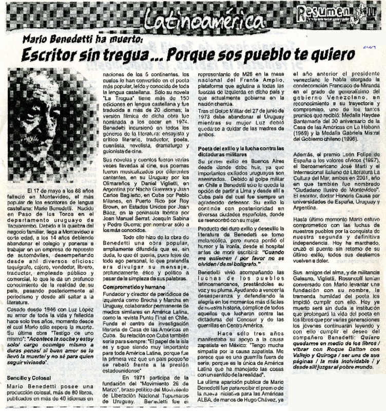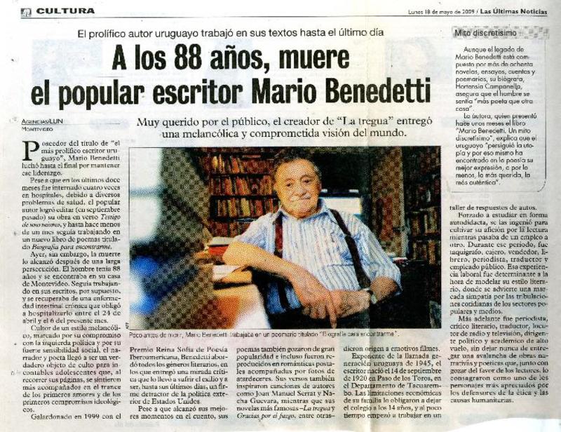 A los 88 años, muere el popular escritor Mario Benedetti [artículo].