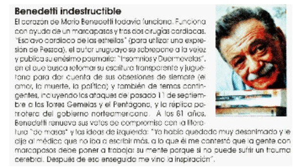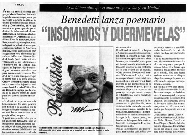 Benedetti lanza poemario "Insomnios y duermevelas". [artículo]