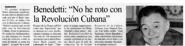 Benedetti, "No he roto con la Revolución Cubana". [artículo]