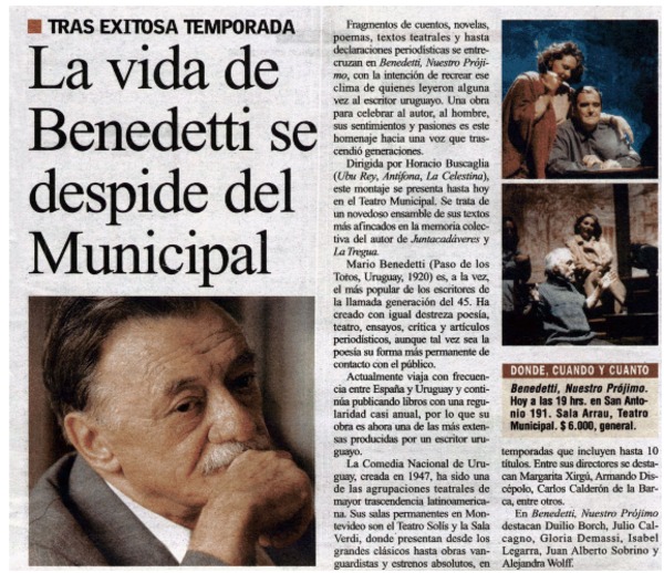 Benedetti recibe homenaje del teatro uruguayo. [artículo]