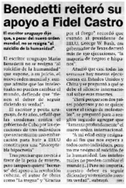 Benedetti reiteró su apoyo a Fidel Castro. [artículo]