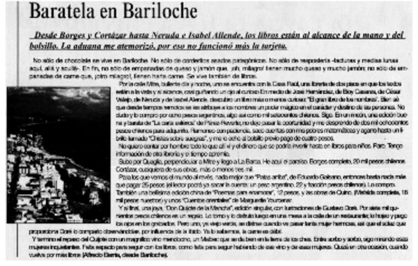 Baratela en Bariloche [artículo] Alfredo Barría.