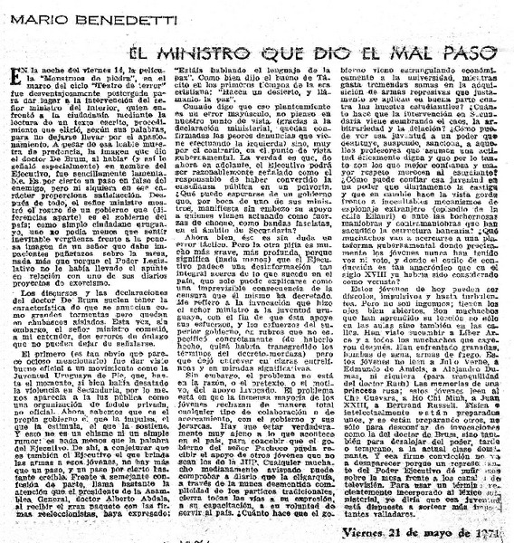 Benedetti, ida y vuelta [artículo] Angel Rama.