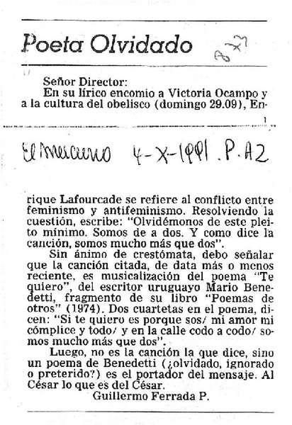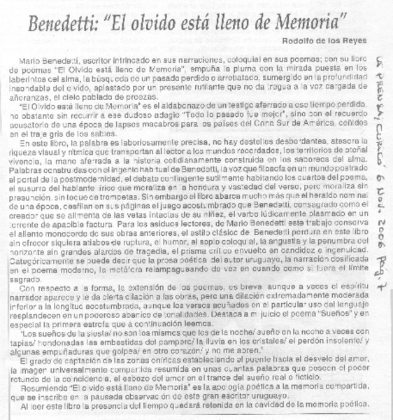 Benedetti: "El olvido está lleno de Memoria" [artículo]Rodolfo de los Reyes.