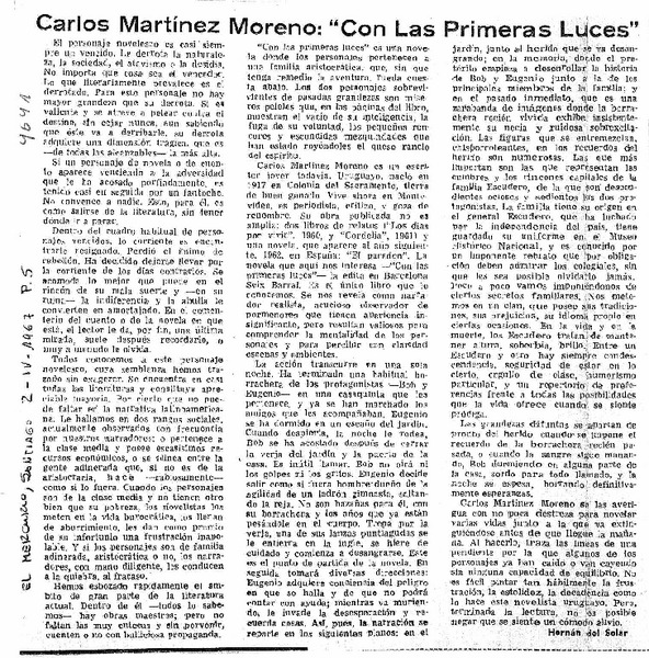 Carlos Martínez Moreno, "Con las primeras luces" [artículo] Hernán del Solar.