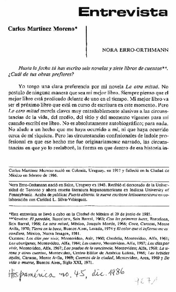 Entrevistas - Autores uruguayos - Benedetti, Mario