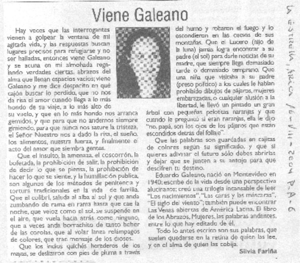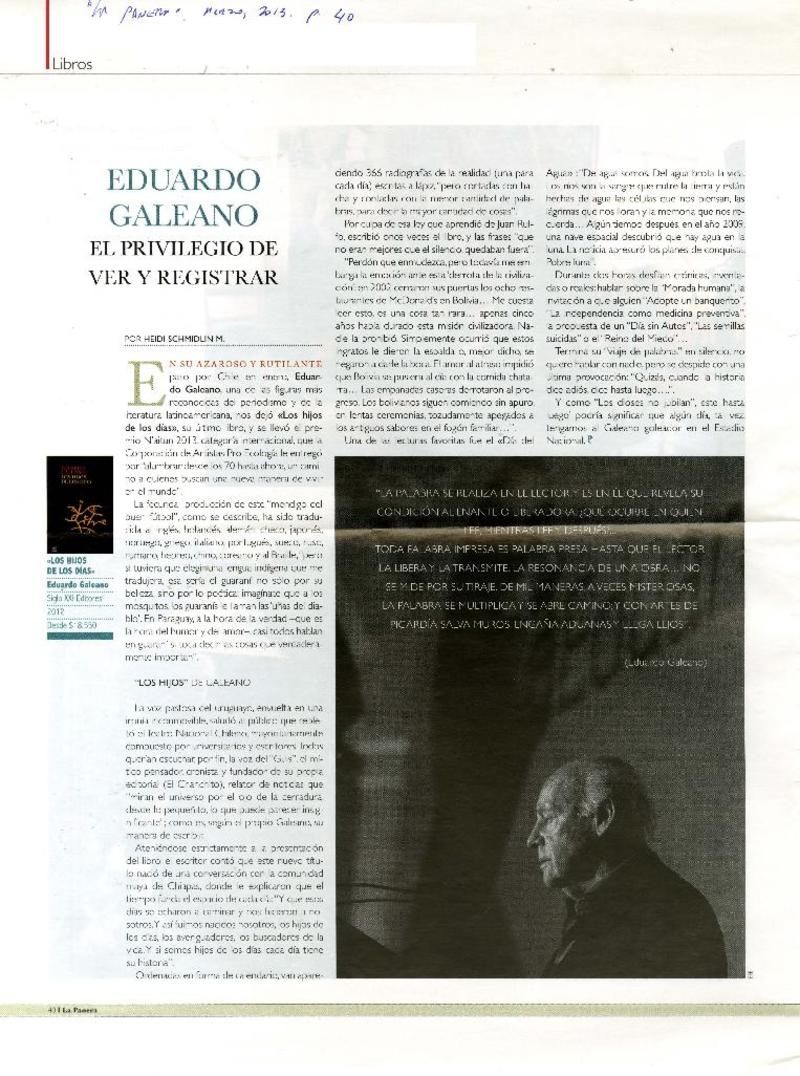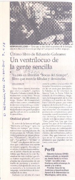 Ultimo libro de Eduardo Galeano : un ventrílocuo de la gente sencilla [artículo] Nicolás Poblete.