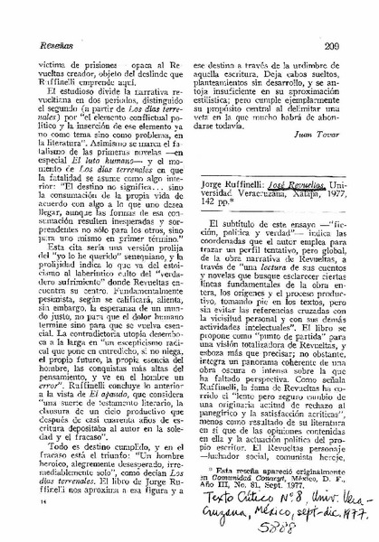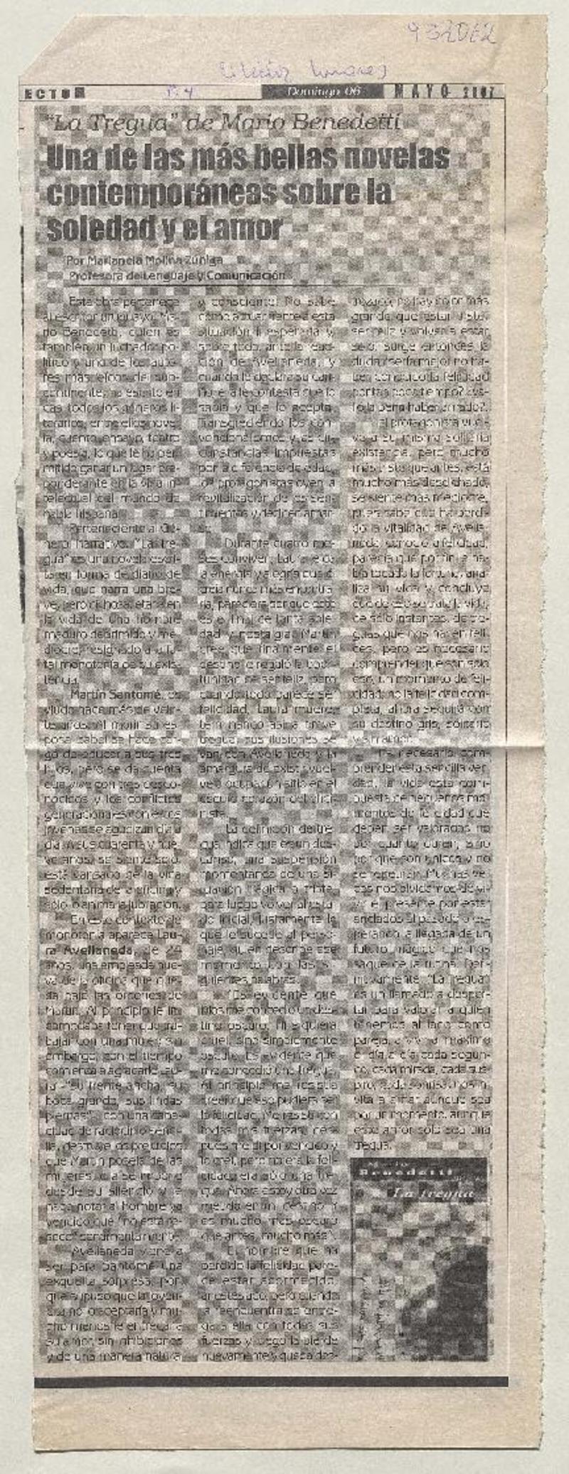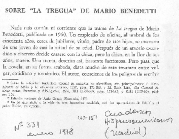 Sobre "La tregua" de Mario Benedetti. [artículo] Joseph V. Ricapito.
