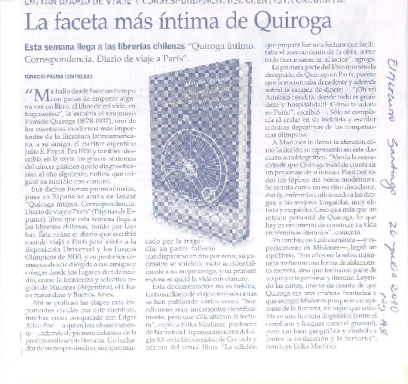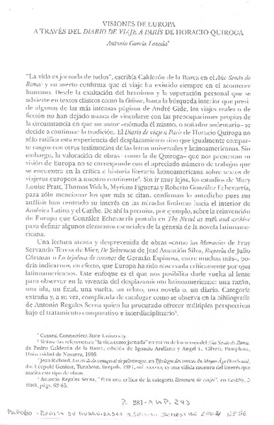 Visiones de Europa a través del Diario de Viaje a París de Horacio Quiroga [artículo]Antonio García Lozada.