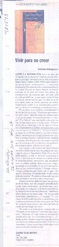 Vivir para no creer [artículo] Artemio Echegoyen.