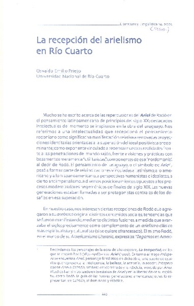 Una evocación necesaria: el Ariel de José Enrique Rodó [artículo] Sebastián Miranda [y] Javier Torres Rojas.