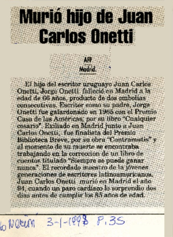 Todas las historia de Onetti se reúen en serie de tres libros [artículo]