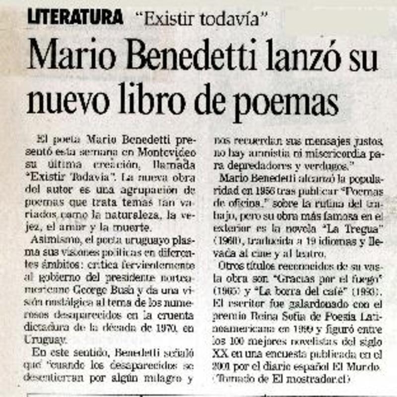 Benedetti, Mario - Autores uruguayos - Sauce llorón - Existir todavía