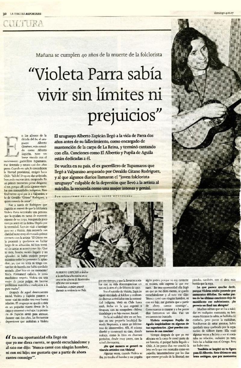 "Violeta Parra sabía vivir sin límites ni prejuicios" (entrevista) [artículo] Guillermo Pellegrino.