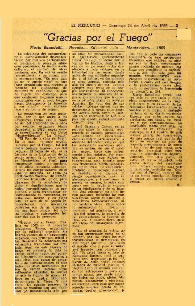 BENEDETTI, MARIO - SKARMETA, ANTONIO - Autores uruguayos - Autores chilenos - GRACIAS POR EL FUEGO - INSURRECCION, LA